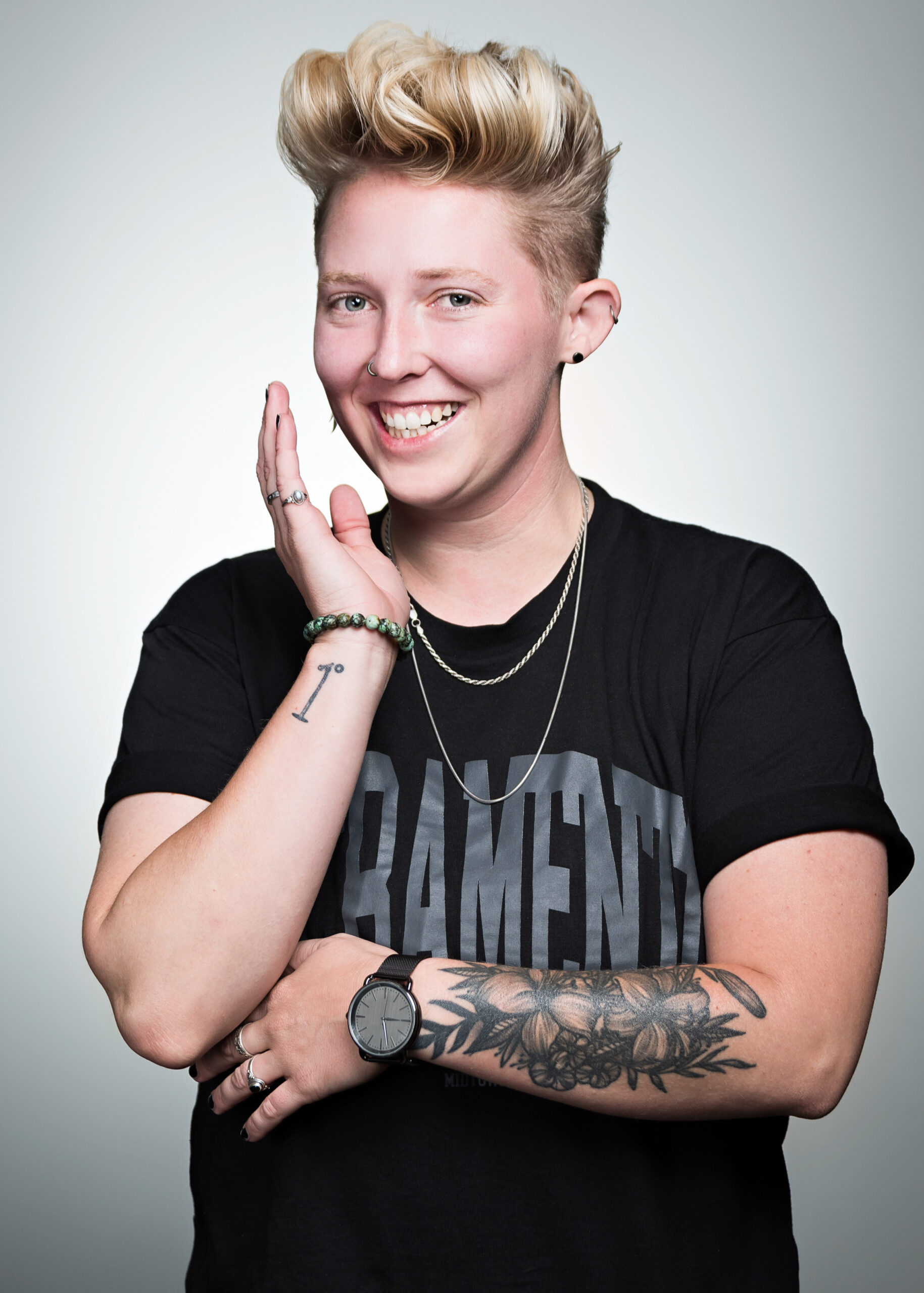 With her blonde pompadour and blunt sarcasm, Sydney Stigerts established herself in the Sacramento, CA comedy scene at a young age. She delights in skewering her millennial peers almost as much as she likes mocking her queer community. On stage, she is high energy, relatable, and would love to tell you a story. As a member of the group 1° of Separation: A Funny Look at Depression, she has performed at colleges and comedy clubs from South Dakota to California. With three other members of 1° of Separation, she was the subject of the documentary Dying to Laugh. Her crowd work and wit on stage quickly made her a viral sensation leading to her first independent co-headlining tour — The Hot & Funny tour. She is a regular opener for Jared Freid and has also opened for Cameron Esposito, Sophie Buddle, Bob the Drag Queen, and Jinkx Monsoon. She’s performed in the San Diego Comedy Festival, The Laughed Out Queer Comedy Festival in Las Vegas, the San Francisco Comedy Competition, and won the Best of Fest award at The Big Pine Festival in Phoenix. She was also a nominee at the Laugh After Dark Comedy Fest in Las Vegas. https://www.instagram.com/sydstig